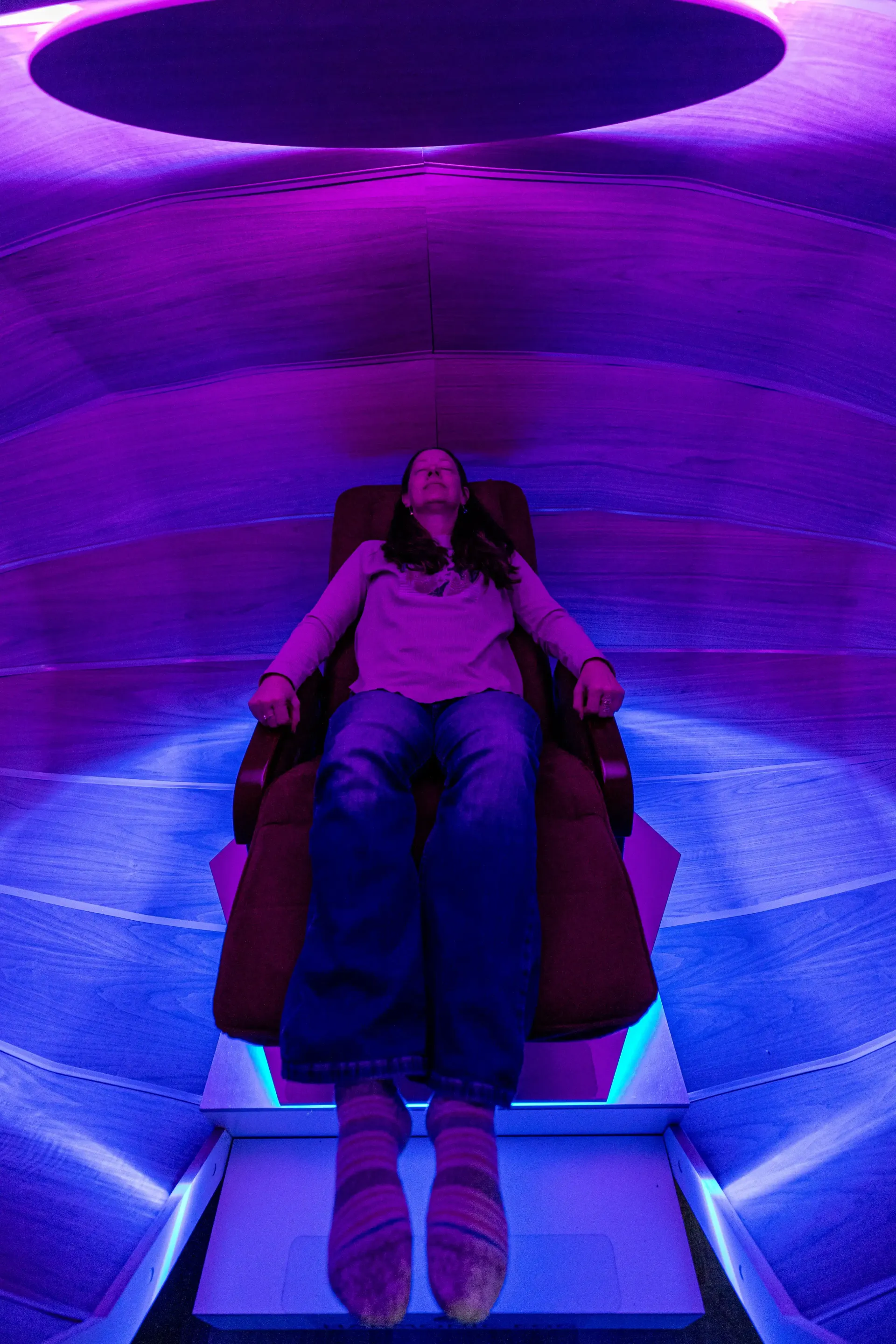 At Vitality Room in Windham, we use the Harmonic Egg® — a non-invasive sound and light chamber designed to help your body shift out of stress mode.